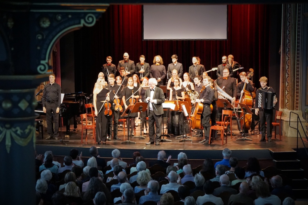 Bundesverdienstkreuz- und Kulturpreisträger Wolfgang Scherer musiziert mit 45 Musikerinnen und Musikern, darunter 1. Preisträger von „Jugend musiziert“ und Sieger internationaler Wettbewerbe.
